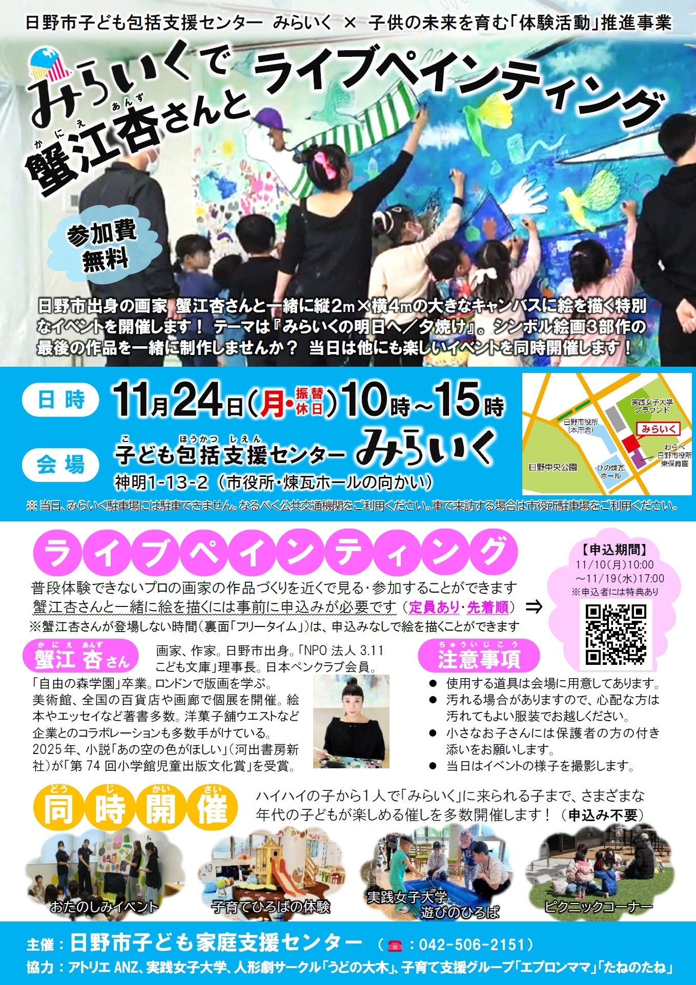 11月24日(月・祝)みらいくで蟹江杏さんとライブペインティング