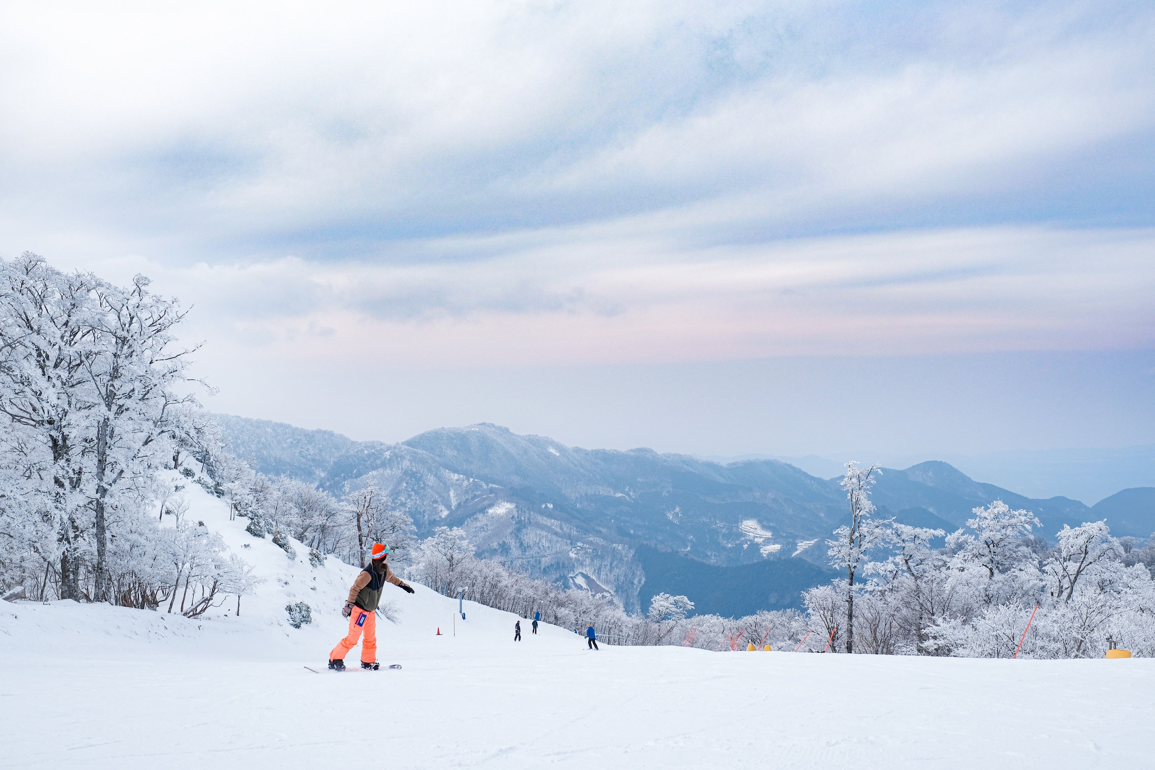 南国イメージのある宮崎県にある日本最南端の天然雪のスキー場です。最上部は標高1610mもあり、ゲレンデから望む阿蘇山やくじゅう連山の大パノラマは絶景です。なだらかな勾配の長さ60mの初心者コースをはじめ、「幻のコース」とも呼ばれる上級者向けのダイナミックコース 650m(平均斜度25°)を楽しむことができます。