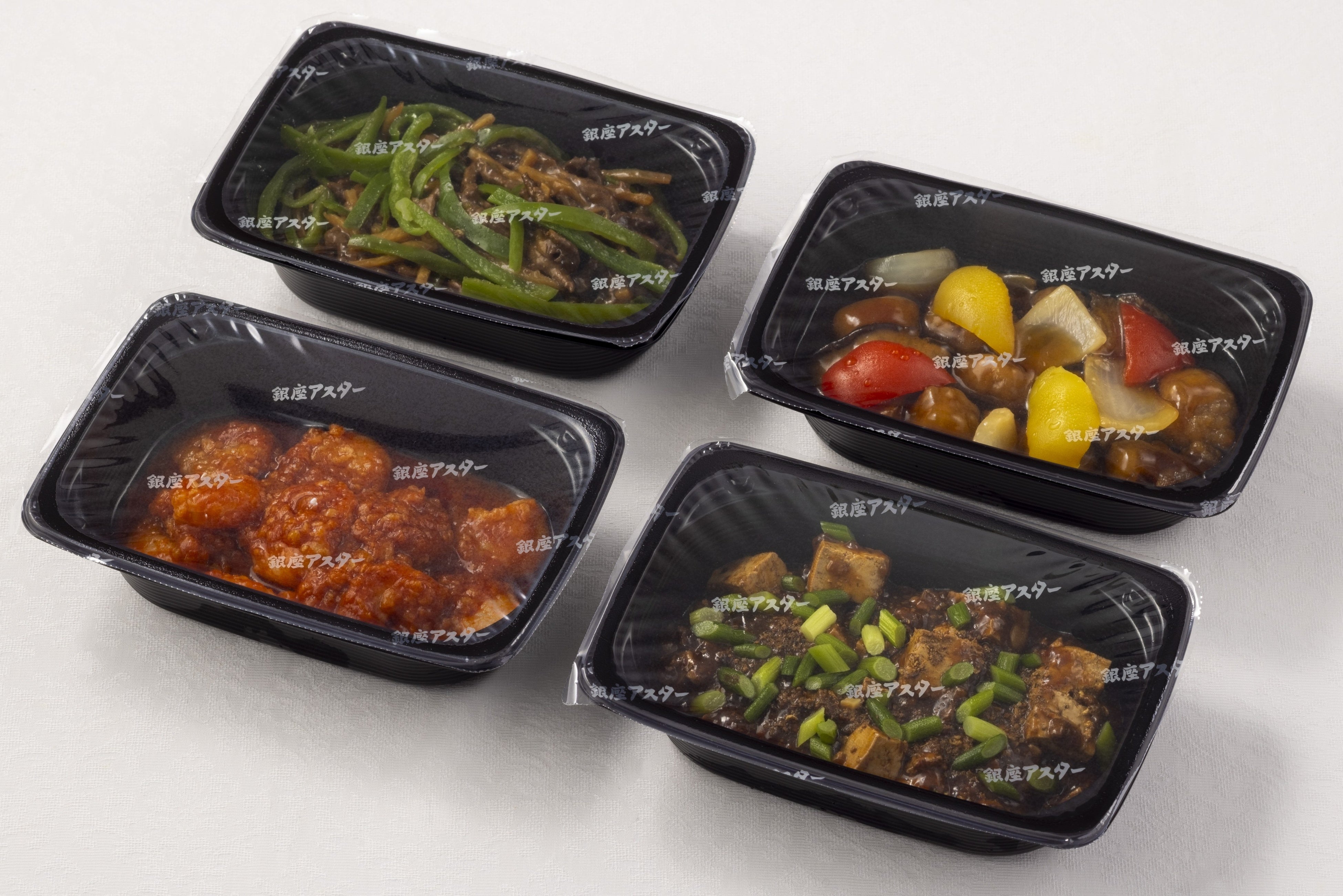 阪急うめだ本店のお客様に銀座アスターの味を体験していただくために、当店限定でお弁当を販売。銀座アスターで人気の「海老のチリソース煮」「牛肉とピーマンの細切り炒め」「酢豚」をメインとした3種類のお弁当を展開いたします。