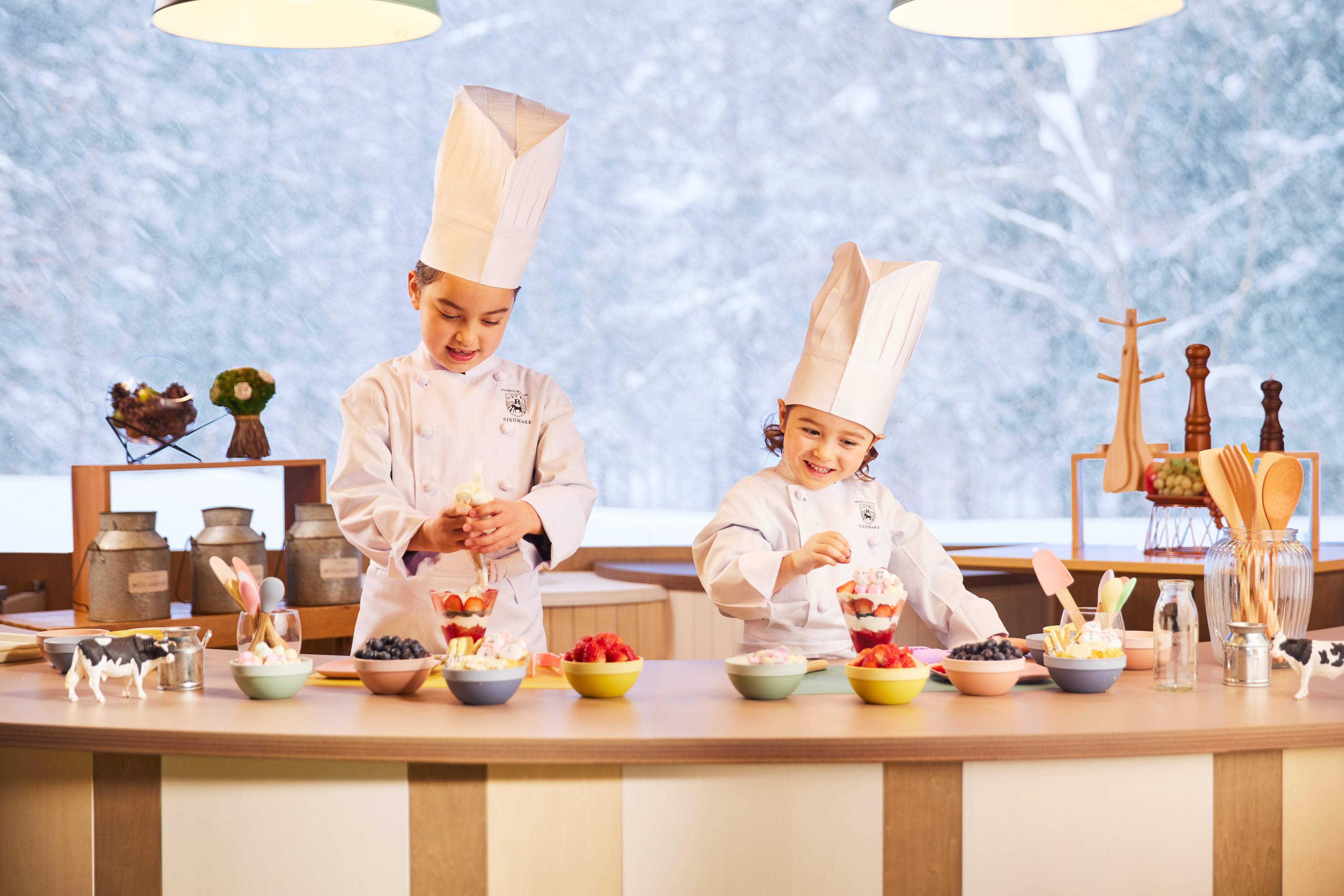 リゾナーレキッズスタジオ子どもたちが本格的なパティシエに変身し、オリジナルスイーツ作り体験ができるアクティビティです。また、家族で食事を楽しみながら、出来上がったスイーツを一緒に味わえます。