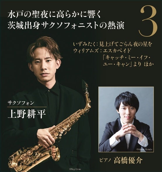 3rd Stage 水戸の聖夜に高らかに響く 茨城出身サクソフォニストの熱演上野耕平(サクソフォン)、高橋優介(ピアノ)