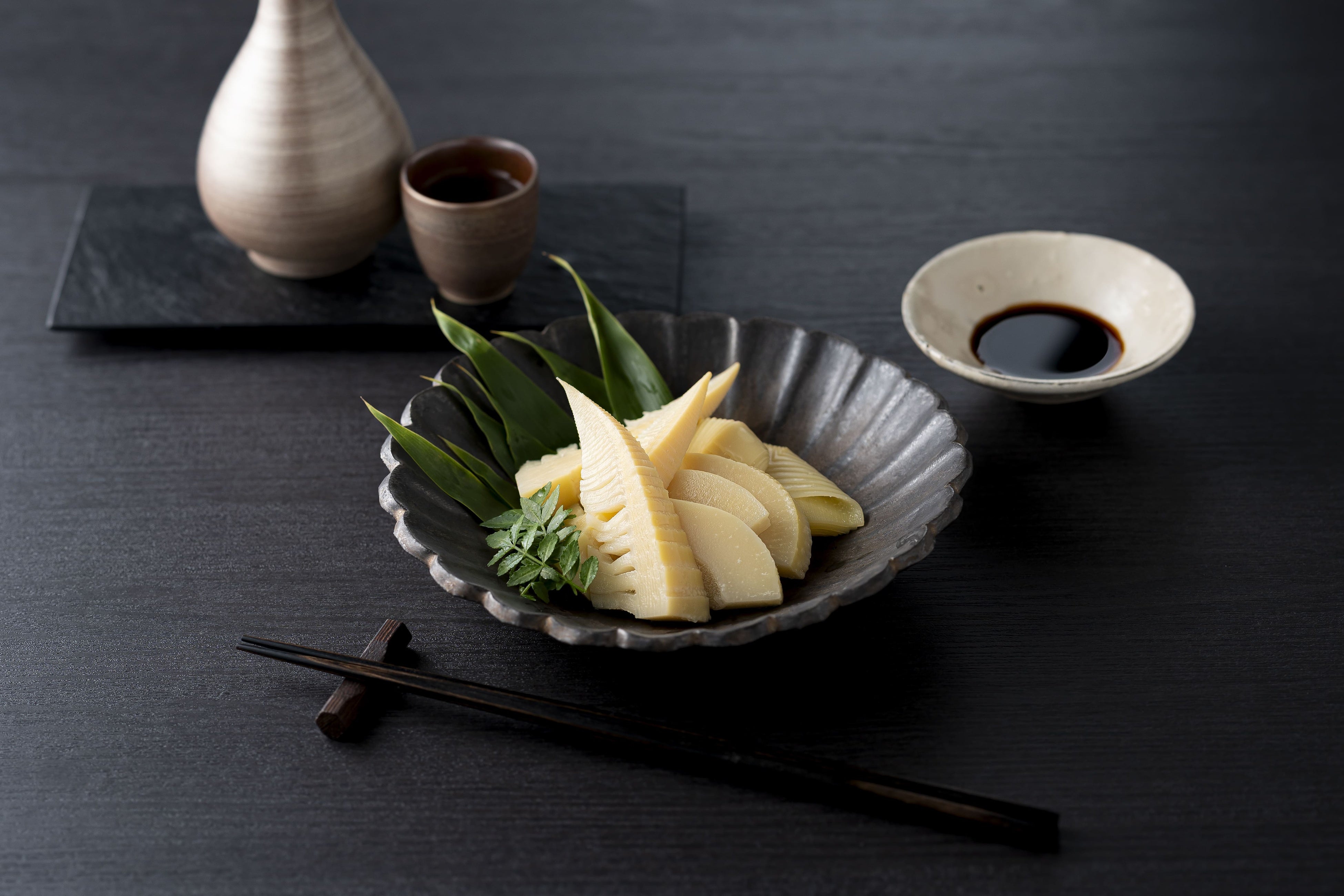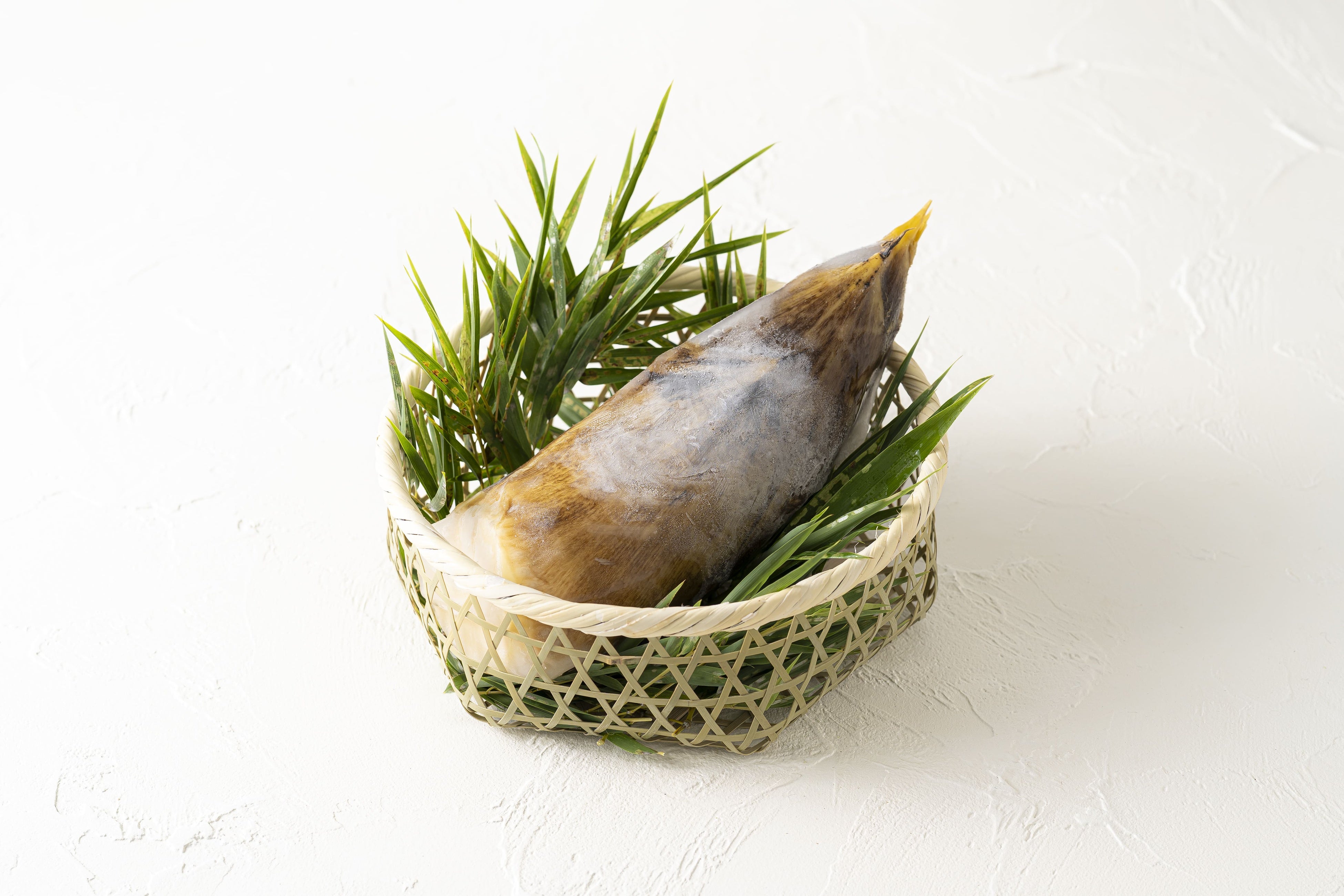 旬の時期に収穫したての京たけのこをすぐさま皮ごと茹で、独自の特殊冷凍技術で加工し、解凍後も刺身で食べられるほどのみずみずしさと香りを実現。