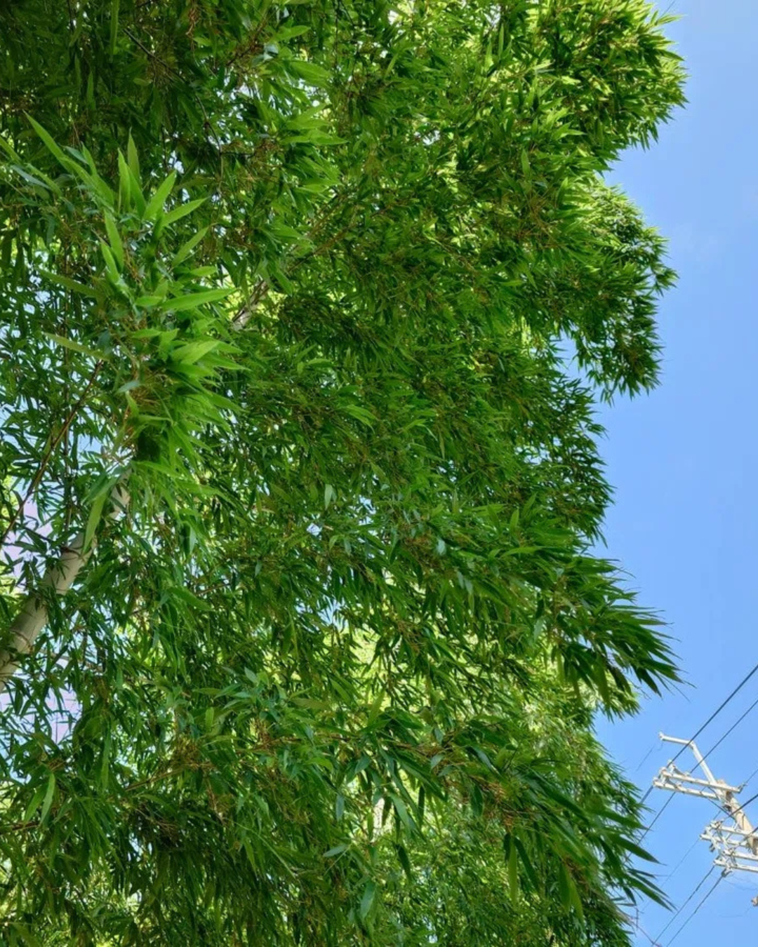 シナチクノメイガ被害の影響で葉が黄変し、竹が弱っている様子