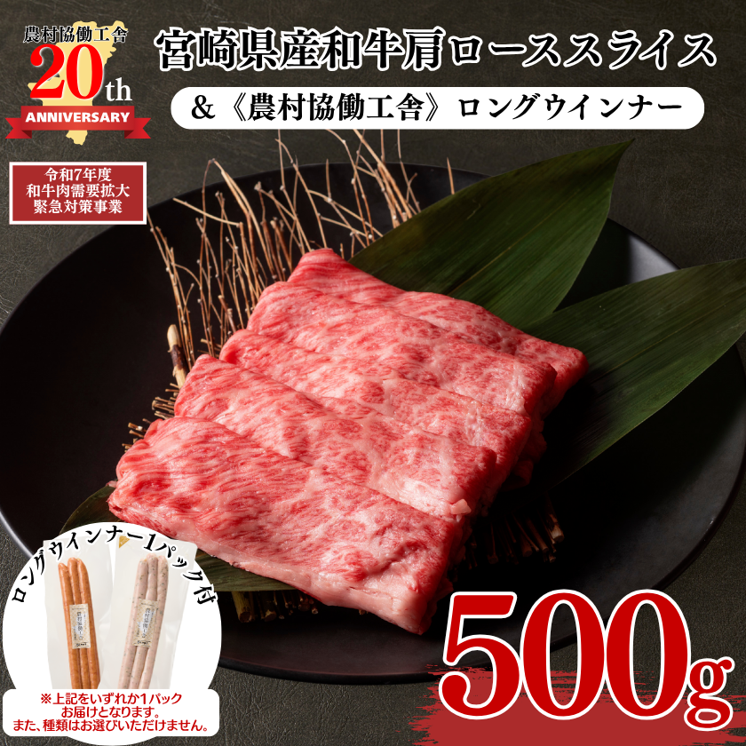 【農村協働工舎20周年記念】宮崎県和牛肩ローススライス500g+農村協働工舎ロングウインナー