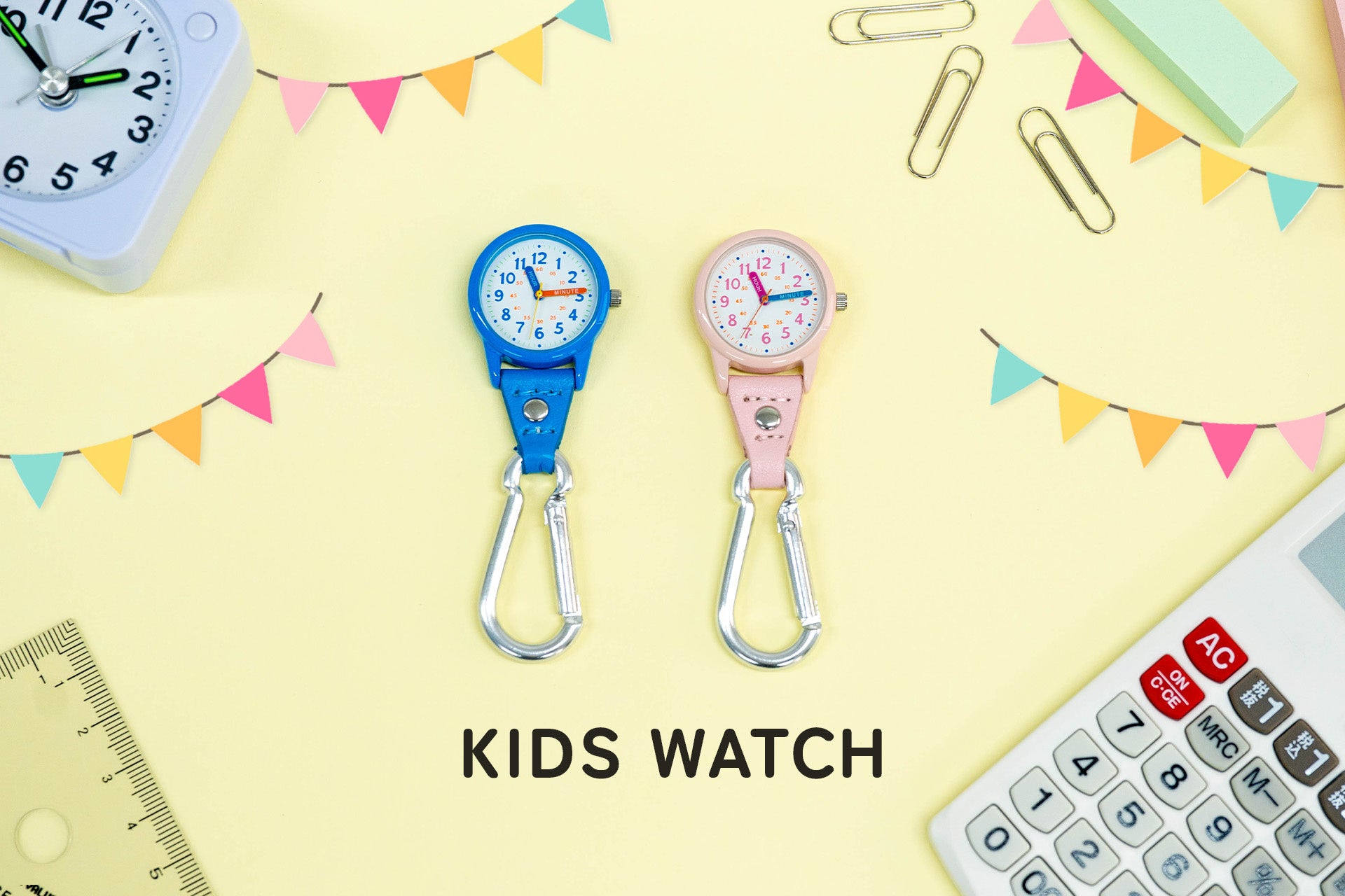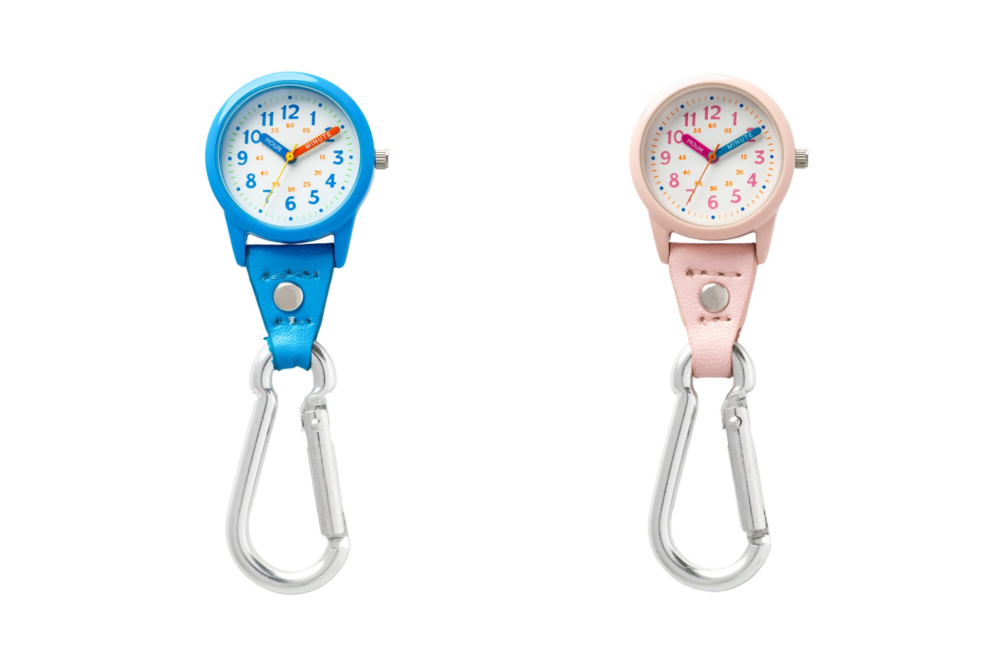 子供の小さな手になじむサイズ感、可愛らしいカラーリングが特長のハンギングウオッチは、文字盤と針の色やデザインなど細部に工夫を凝らし「使いやすさ」を追求しています。