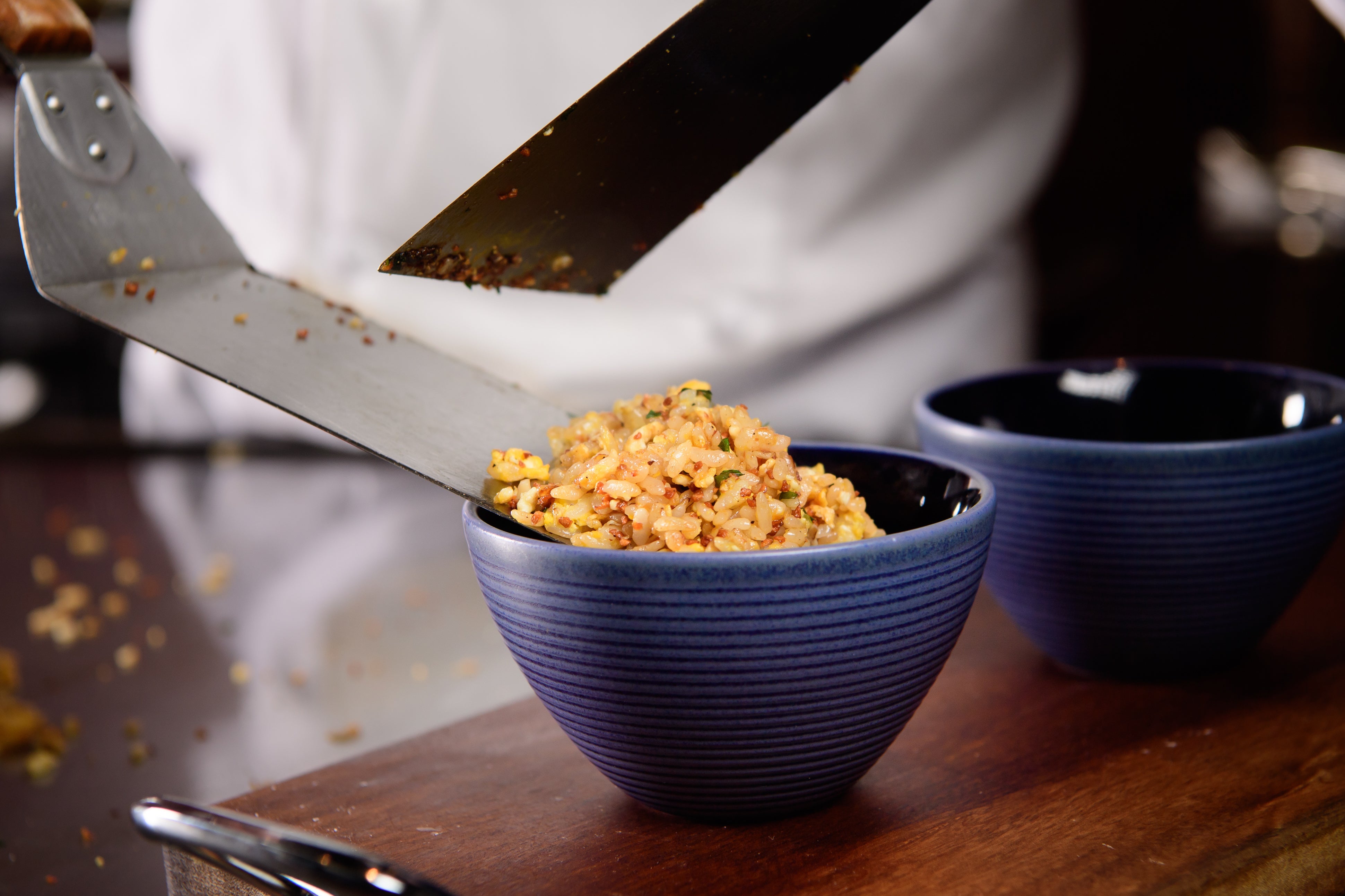 ガーリックライス鉄板焼きの〆を飾る、当店の自慢のガーリックライス。特選玉子を贅沢に使用し、熱で一気に香りを立てたガーリックライスと共に、職人の手際で米一粒一粒に旨味を閉じ込めます。パラパラでしっとり、極上の風味を纏ったご飯は、一度食べたら忘れられない美味しさ。べたつかない究極の炒め加減で、最後まで飽きさせない美味しさをご堪能下さい。