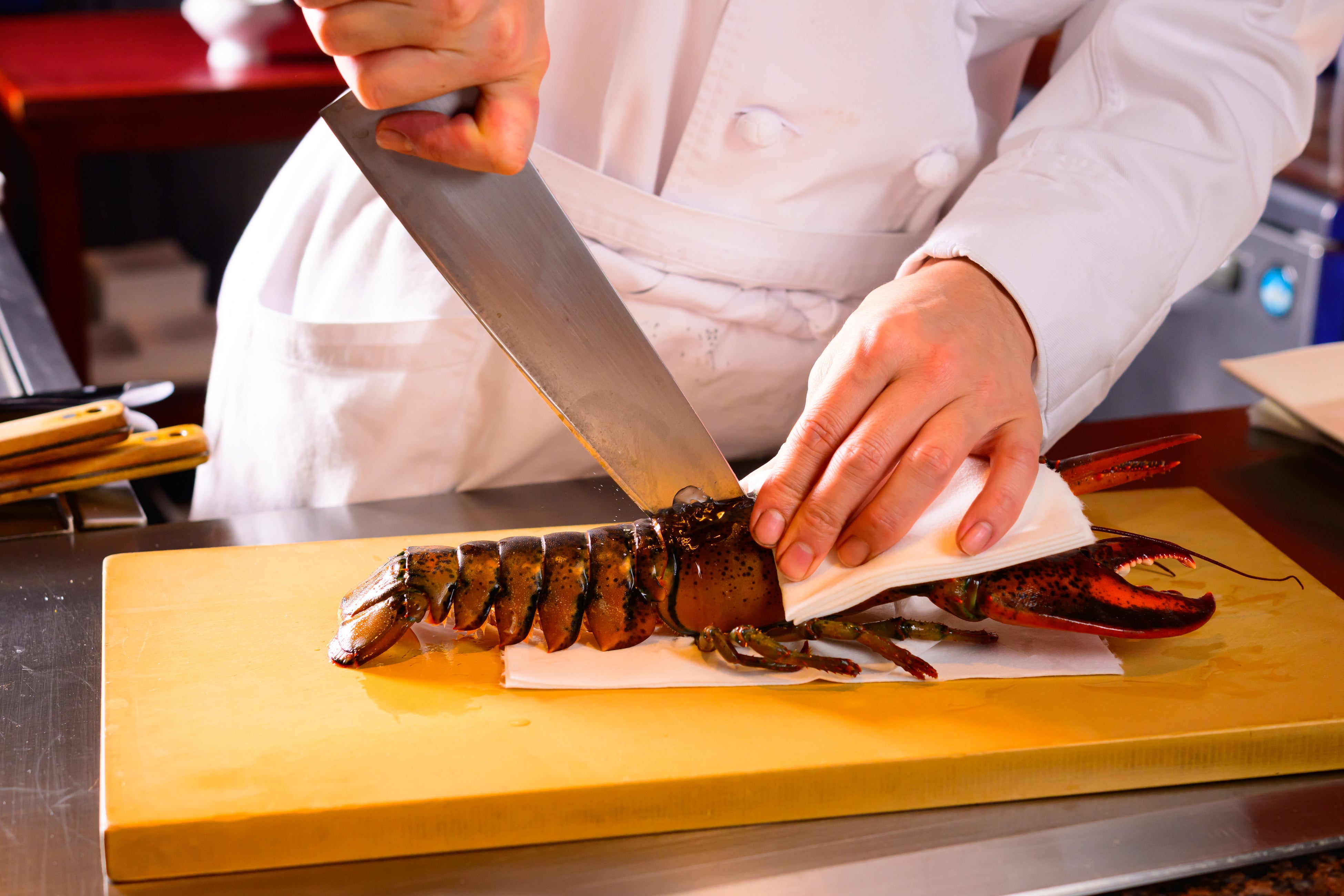 活オマール海老のフランベ鉄板焼きで堪能する、活オマール海老の極上の仕上がり。透き通るような身質と噛むほどに広がる繊細な甘み。オマール海老の殻からとった出汁を使ったソースも活海老の繊細な風味をより一層引き立てます。