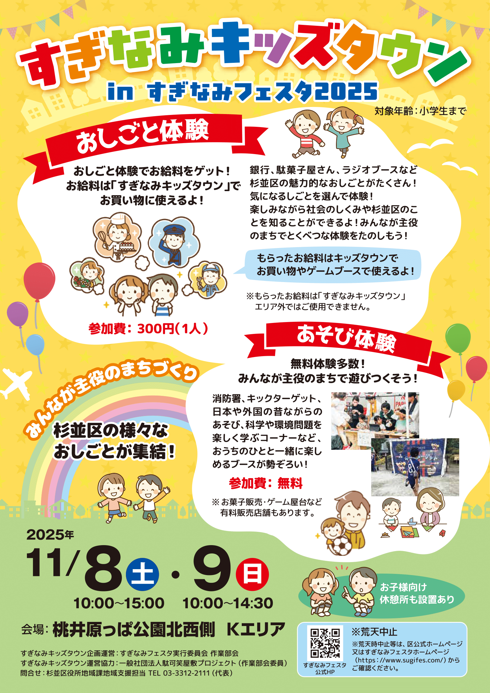 イベント名:すぎなみキッズタウン in すぎなみフェスタ 2025日程:2025年11月8日(土)10:00~15:00、11月9日(日)10:00~14:30