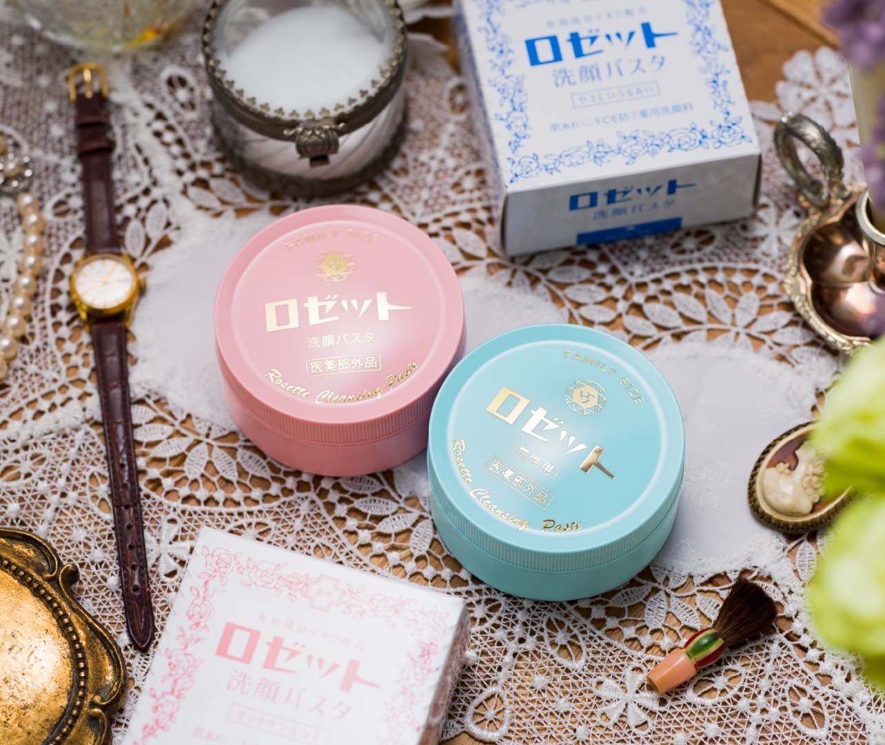 ロゼット株式会社が1929年に発売した「ロゼット洗顔パスタ」は、まだ固形石鹸しかなかった時代に「ニキビを解消できる、肌にやさしい洗顔料を作りたい」という想いから、独自製法を用いて生み出