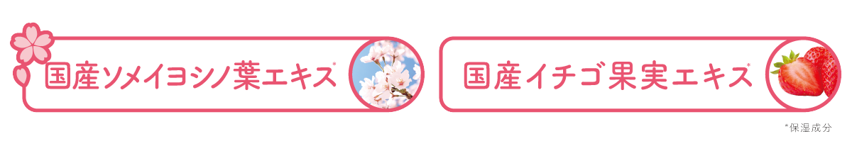 桜といちごの2種の植物エキス*3が、乾燥でゆらぎやすい肌をうるおいで満たしてととのえます。