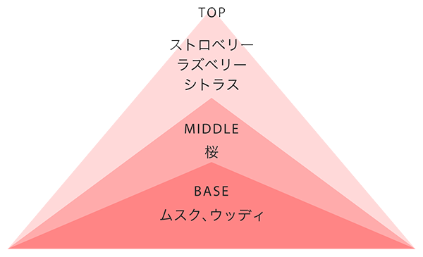 繊細な桜の花々とみずみずしいイチゴやラズベリーが調和した、春の訪れが待ち遠しくなる、さわやかで華やかな香り。