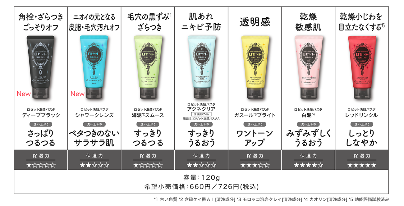 肌悩み別で選べるラインナップ!ロゼット洗顔パスタ クレイシリーズ