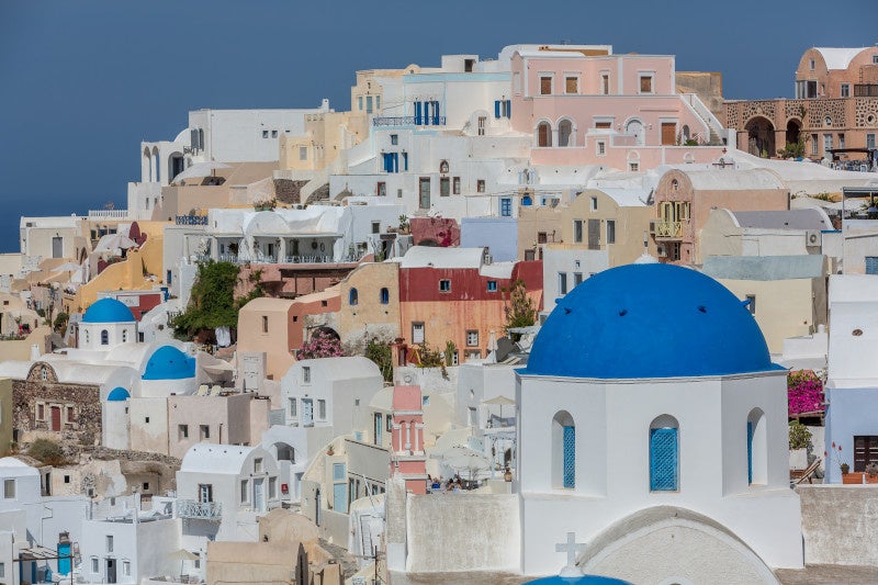 このツアーでは火山によってつくられた美しいビーチ、ロイヤル・カリビアンならではの体験やサービス、そして活気に満ちたギリシャの文化などすべてを楽しむことができます。地中海の雰囲気漂うビーチでリラックスするだけでなく、イアの街の有名な白壁と青いドームの教会など島の名所を訪れたり、フィラの街でアートギャラリーやショップを巡ったりカフェを楽しんだりと誰もがあこがれるようなサントリーニでの1日を過ごすことができます。