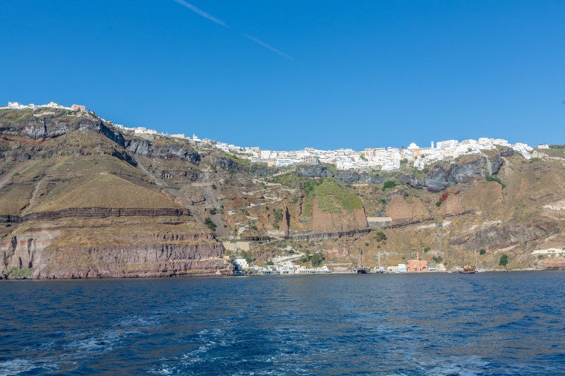 サントリーニ島は火山性の黒砂や赤砂のビーチが有名
