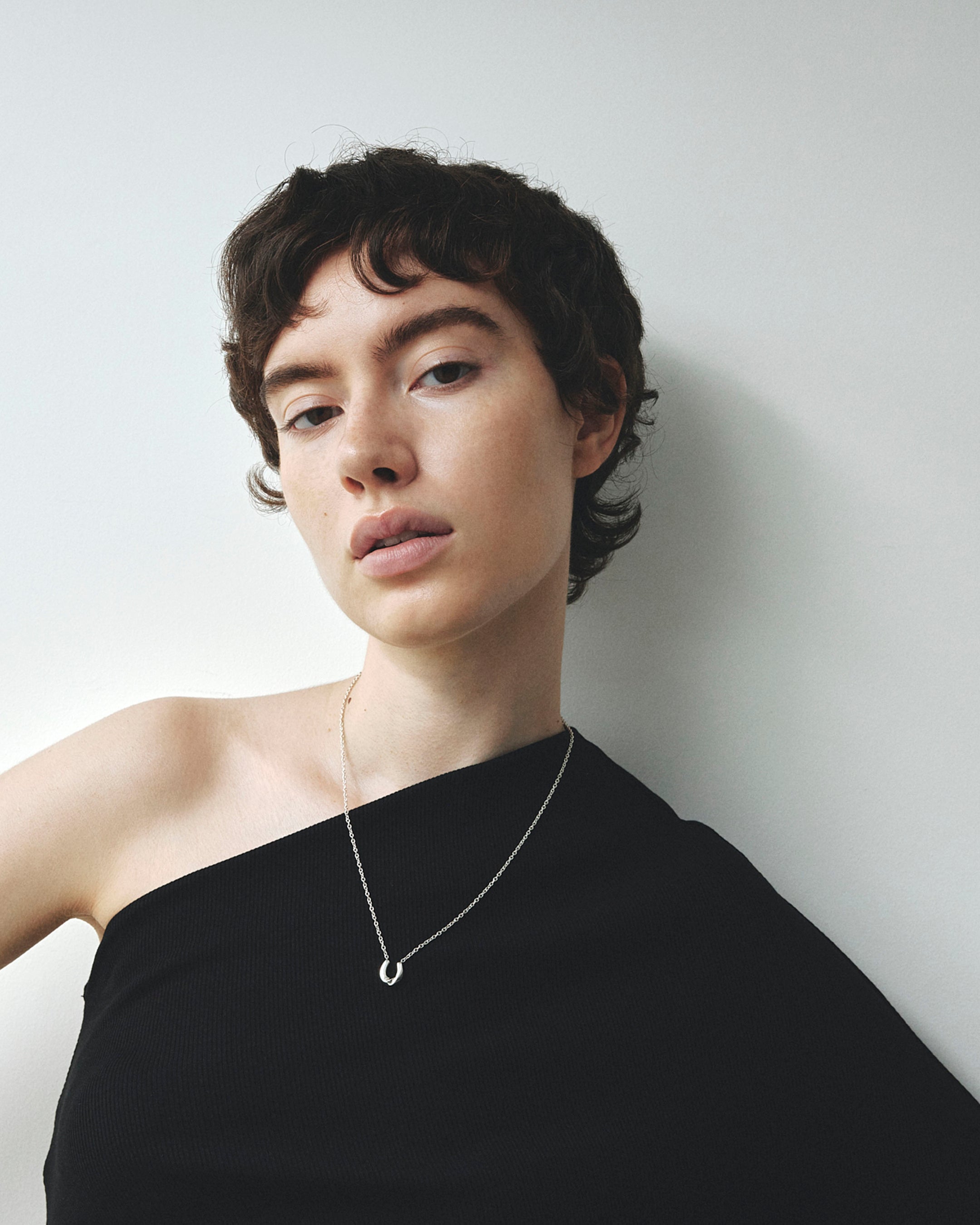 限定アイテムである馬蹄のネックレスは、すっきりとしたバーと流線のディテールを組み合わせ、モダンに仕上げました。小ぶりながら立体感があり、シルバーならではの存在感を楽しめます。
