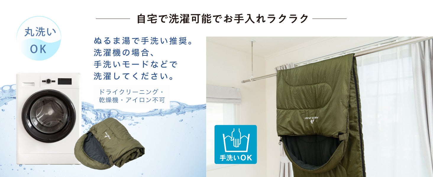 ぬるま湯で簡単に洗濯できます。手洗いモードで優しく洗っていただければ、いつでも清潔に保つことができ、アウトドア後の手入れもラクラクです。
