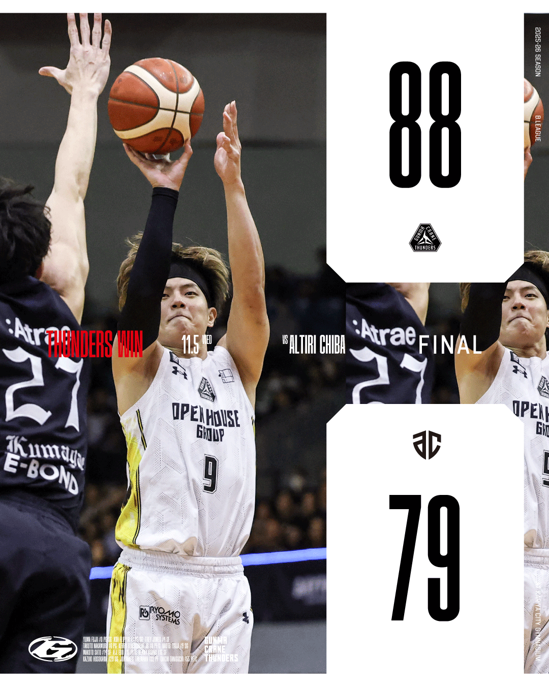 【群馬クレインサンダーズ:試合結果】11/5(水) vs アルティーリ千葉 りそなグループ B.LEAGUE 2025-26シーズン