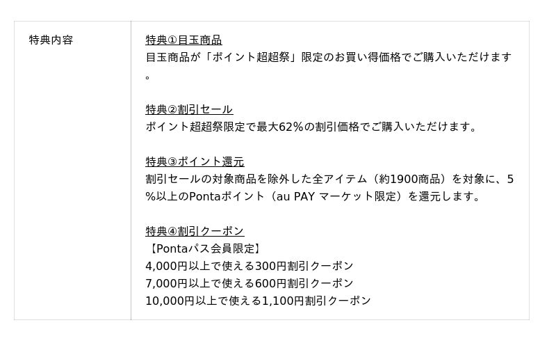 ■11月のポイント超超祭の特典概要