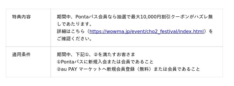 3.ポイント超超祭の特典(https://wowma.jp/event/cho2_festival/index.html)