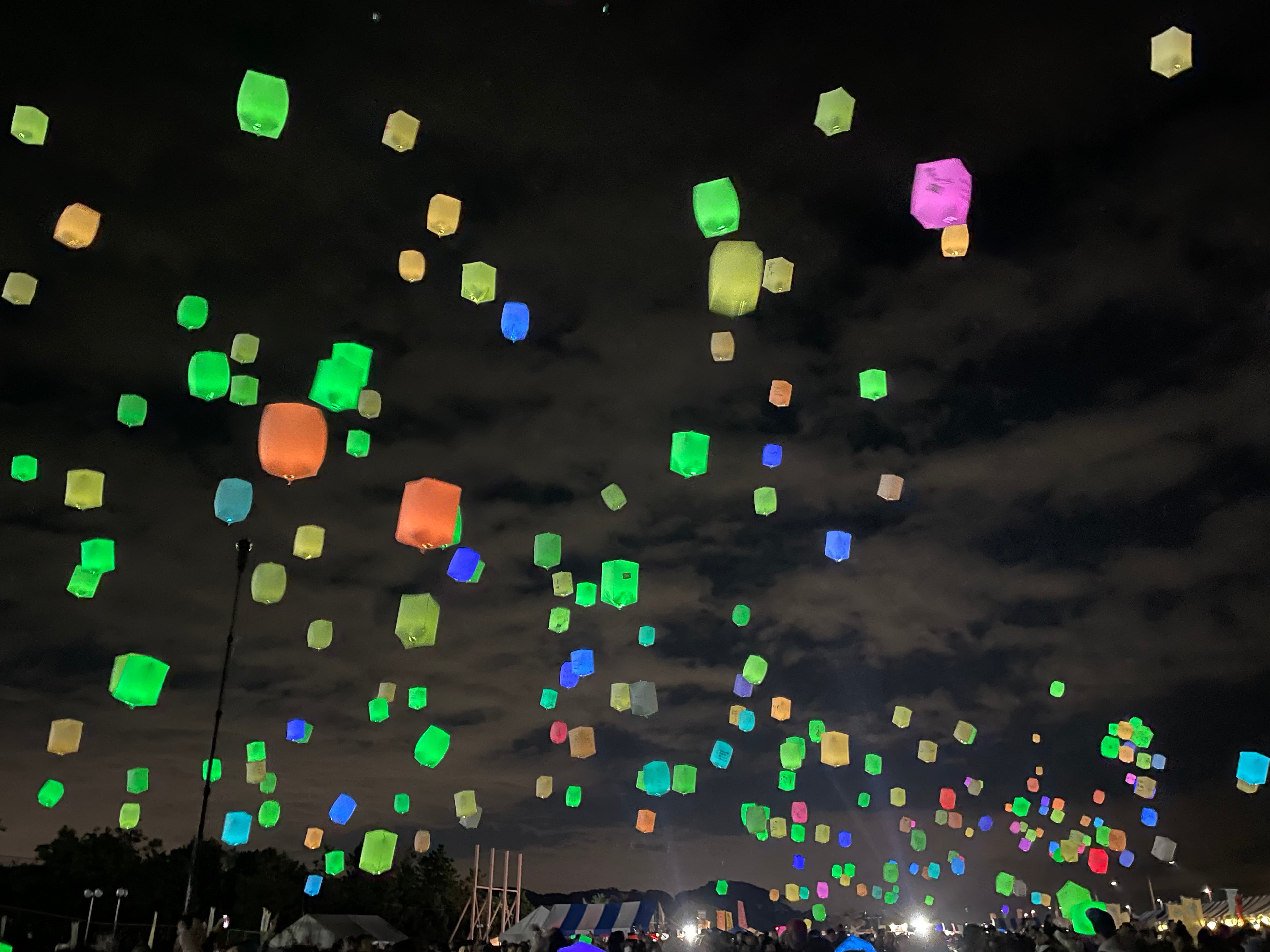 まつりの最後を飾るのは、幻想的なスカイランタンの打ち上げ。願い事を込めたランタンを飛ばし、大磯の空を幻想的に彩ります。