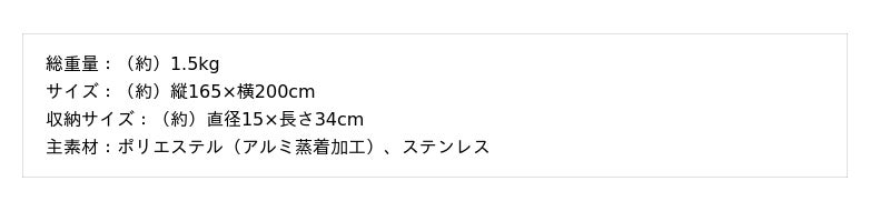 合計12個のステンレス製ウェイトが自重でシートを引っ張るので、綺麗にシートが広がりやすく、風に煽られてもシートを地面に押さえつける。裏面は防水加工を施しているため、湿った地面や濡れた芝生の上でも安心して使用可能。また、アルミ蒸着による断熱仕様で地面からの冷気を遮断するため、肌寒い日のアウトドアや、床が冷たい避難所でも活躍。中綿入りのキルティング生地を使用しているため、座り心地も抜群。