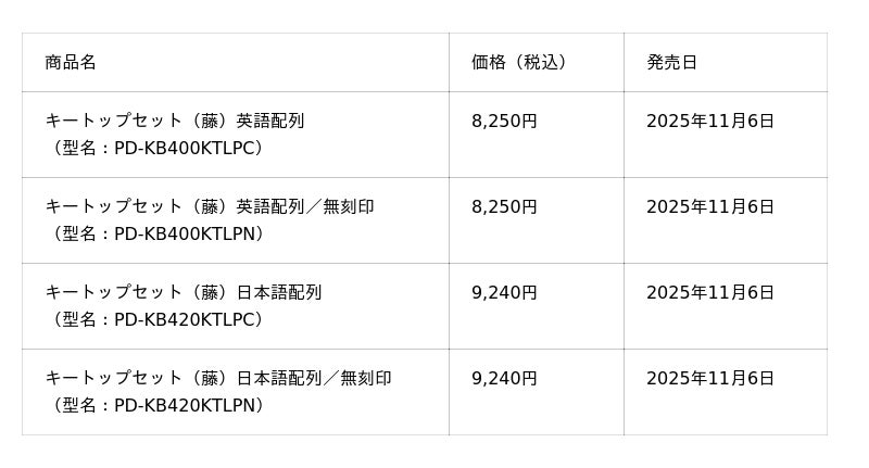 株式会社PFU(社長執行役員:平原 英治、以下 PFU)は、高性能コンパクトキーボードHappy Hacking Keyboard(以下HHKB)ProfessionalシリーズよりHHKBカラーキートッププロジェクト第四弾として「藤」を発売します。