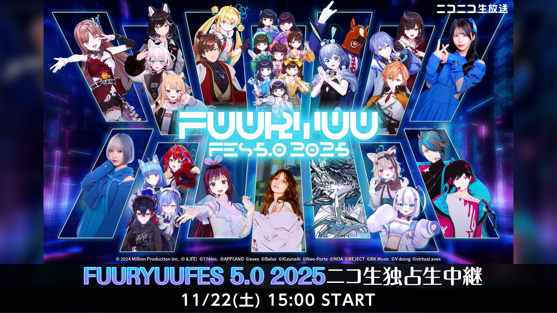 11月22日(土)にぴあアリーナMMにて行われるリアルとバーチャルが融合する次世代フェス「FUURYUUFES 5.0 2025」をニコニコ生放送で独占生中継が決定しました。