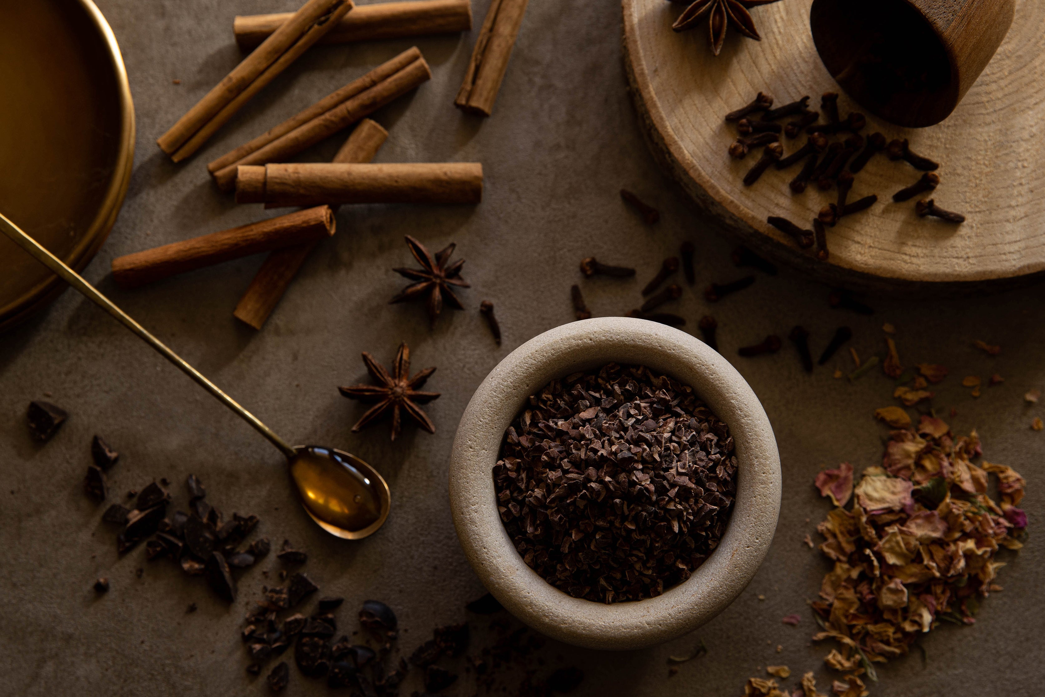 [ハーブ・スパイス]カカオマス・カカオニブ・ローズダマスク・スペアミント・クローブ・八角・コリアンダーシード・クミン・シナモン