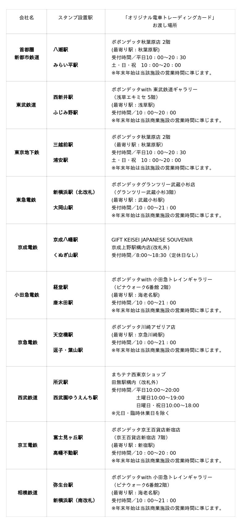 3 スタンプ設置駅および各社達成賞「オリジナル電車トレーディングカード」お渡し場所