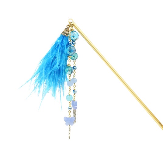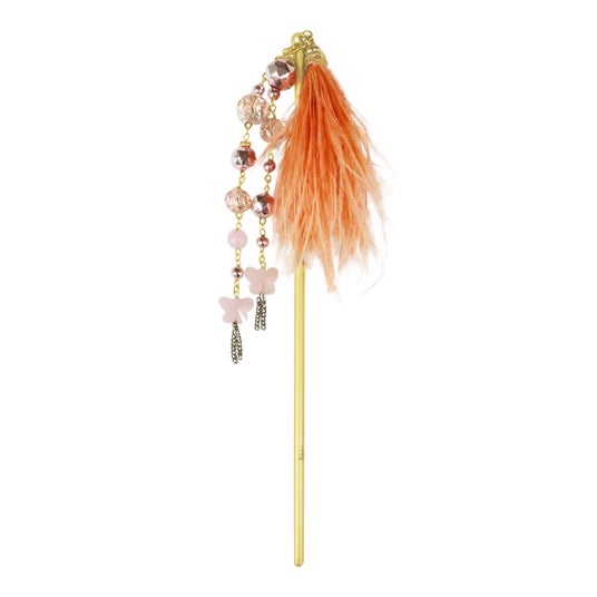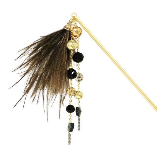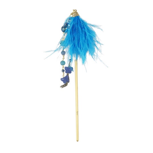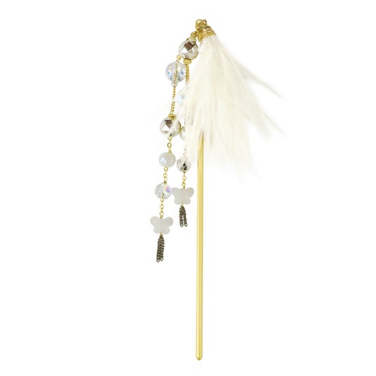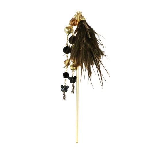 光を受けて煌めく装飾と、柔らかな羽のボリュームが絶妙に調和し、ヘアスタイルを華やかに彩ります。軽やかに揺れる羽が上品な動きを生み出し、身につけるだけで華やかさを引き立てます。