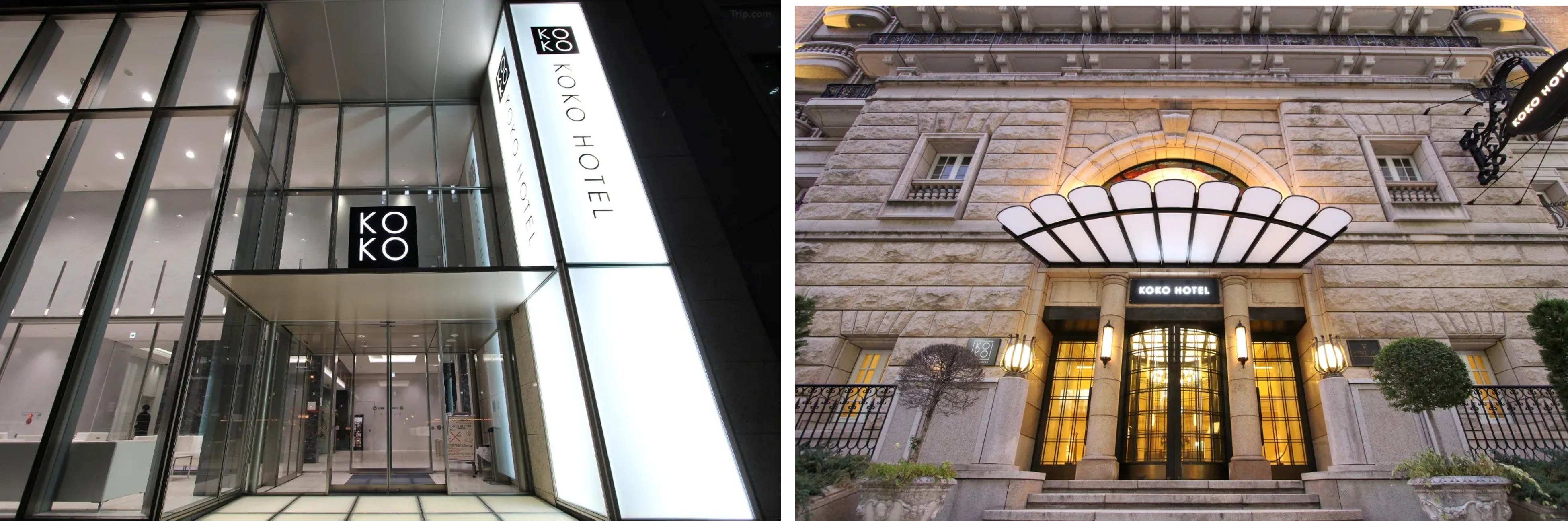 (左)KOKO HOTEL 銀座一丁目 (右)KOKO HOTEL 大阪心斎橋