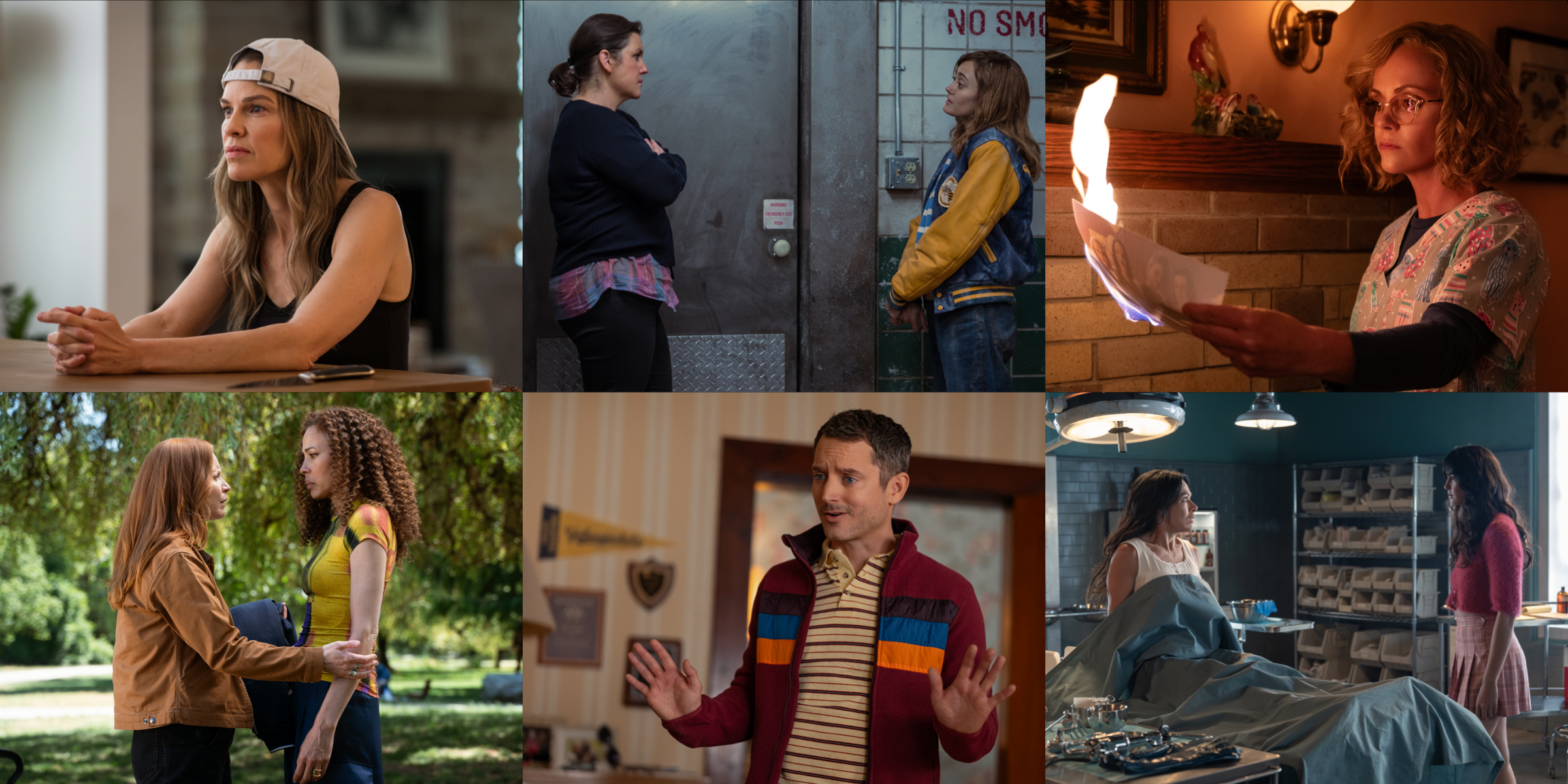 遭難事故から25年後を描く現在編では、前シーズンから続投で生存メンバー役にメラニー・リンスキー、クリスティーナ・リッチ、タウニー・サイプレスらが出演。さらに、ミスティに協力する探偵・ウォルター役にイライジャ・ウッドが前シーズンから続投。そして、新たに登場する生存メンバー・メリッサ役に、映画『ミリオンダラー・ベイビー』でアカデミー主演女優賞に輝いた名優ヒラリー・スワンクがシリーズ参戦を果たします。