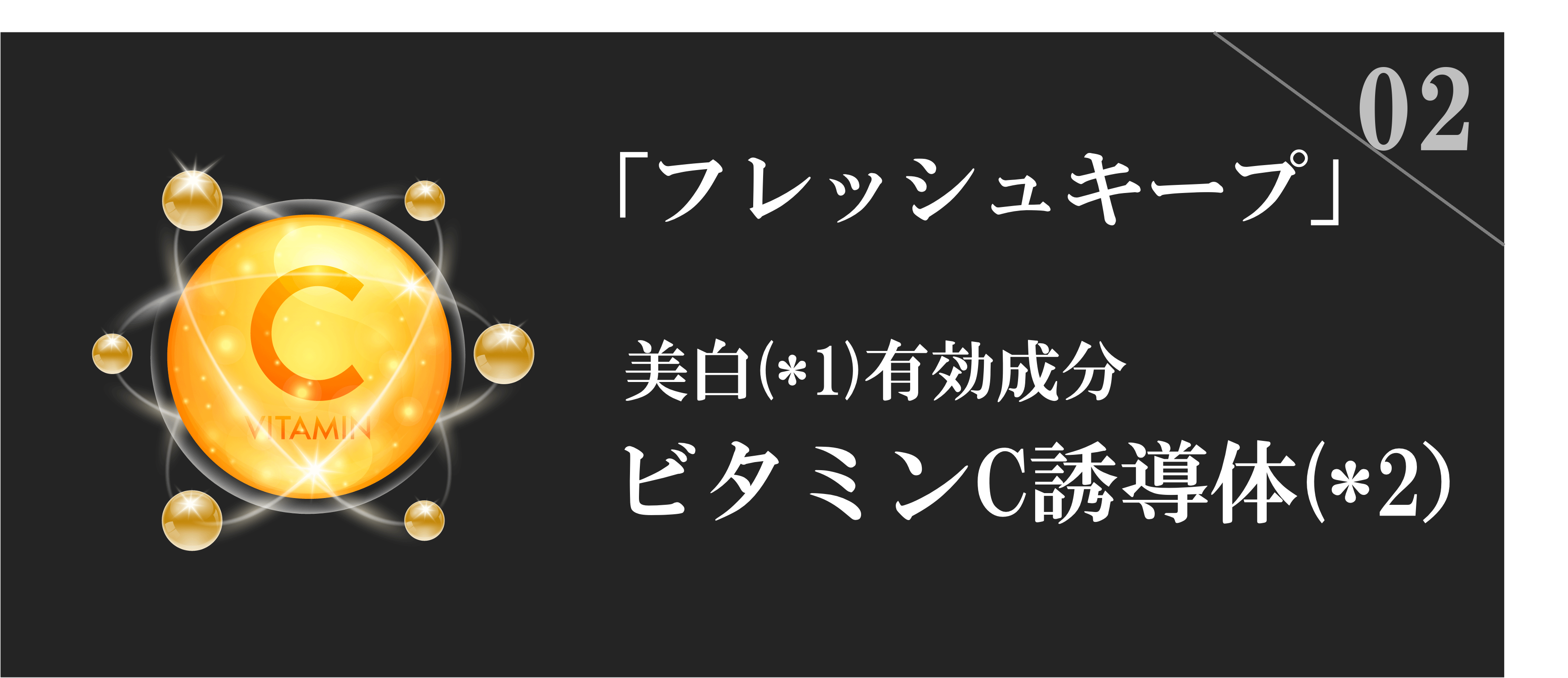 *1:メラニンの生成を抑え、シミ・そばかすを防ぐこと *2 Lーアスコルビン酸2ーグルコシド