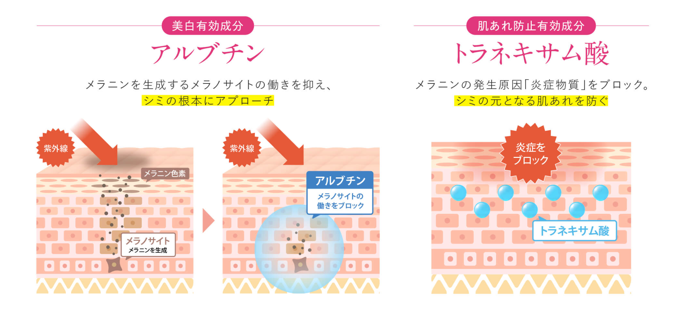 *:メラニンの生成を抑え、シミ・そばかすを防ぐ