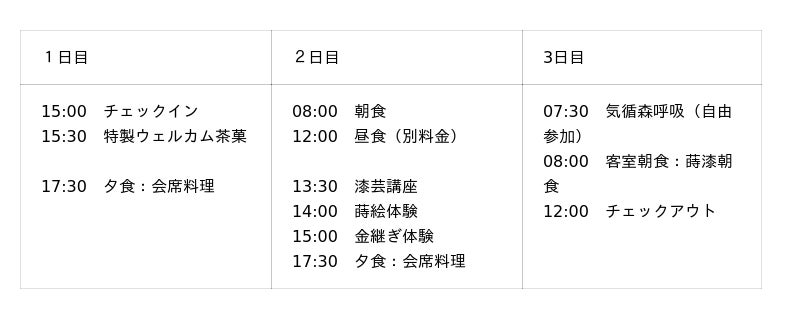 蒔絵や金継ぎの体験、漆器の朝食、作品鑑賞を通して、漆の魅力と美を五感で楽しむ冬季限定の2泊3日滞在