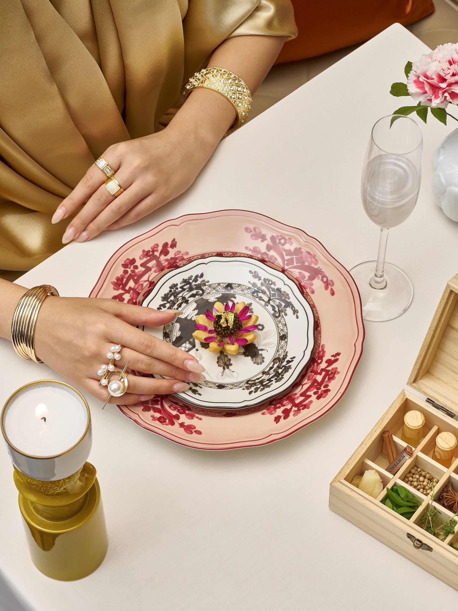 トスカーナの邸宅を思わせる温かな空間で味わう、シェフ吉田 道昭のクリエイティビティが光るフェスティブメニューの数々。真珠のパウダーを含むリキュール「アンブロシア15」を使った柑橘とスパイスの香りが織りなすウェルカムドリンクで、華やかなひとときの幕開けを。輝きを纏う前菜「キャビア ロイヤル クリスタルの小さなクロスタータ」は、寒鰤のタルタルと白人参のピュレがキャビアと織り成すまろやかで奥行きのある味わいが、冬の到来を美しく告げます。ノドグロのインパデッラや奈良県産みわ牛のアッロストなど、素材の個性を極限まで引き出した珠玉の料理を、ラ ベデュータならではの芸術的なプレゼンテーションでご堪能ください。
