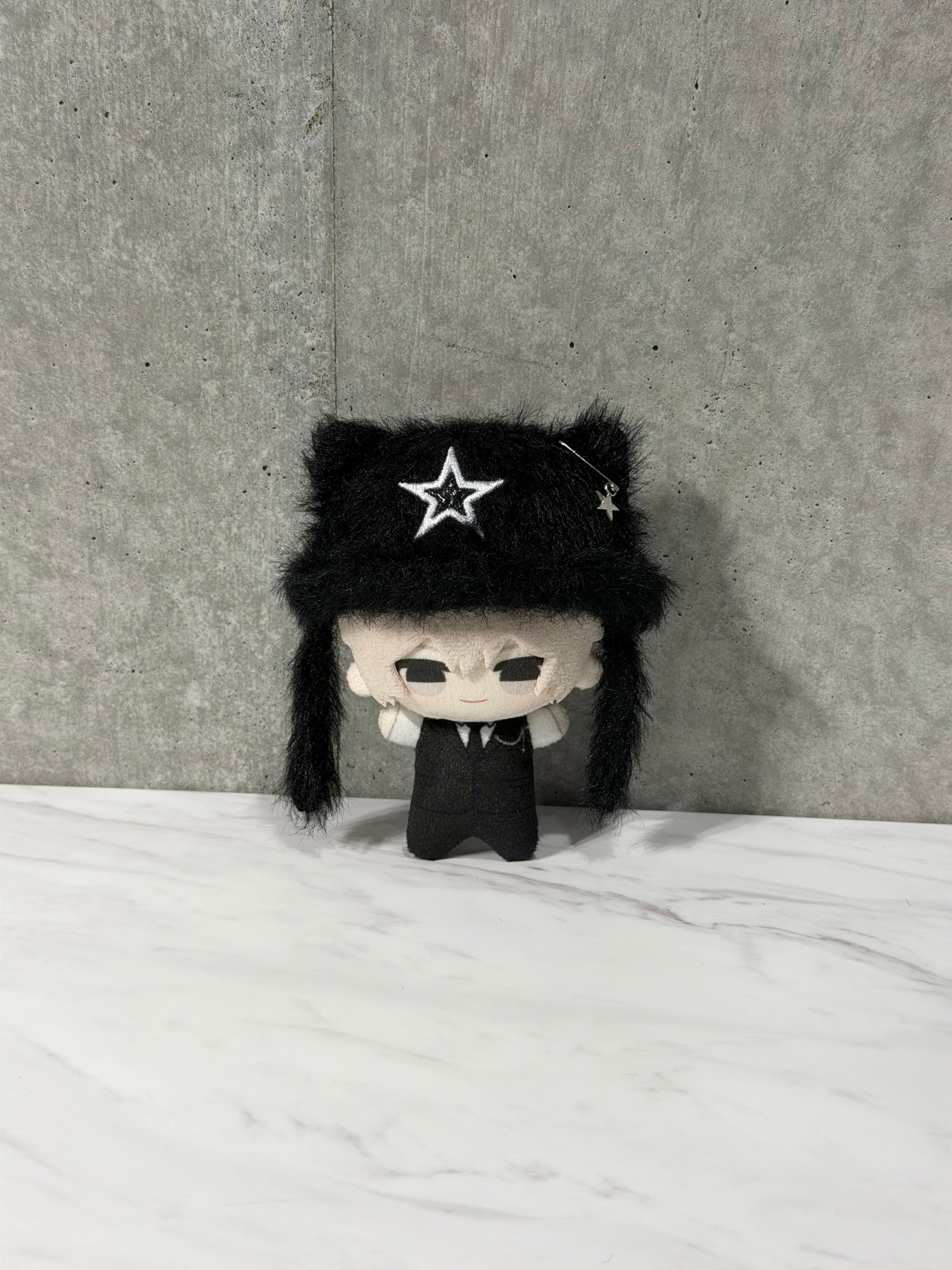 星の刺繍とシルバーチャームがきらめく、ふわもこ素材のキャット帽子。スターラビット帽子とセットでのコーディネートもおすすめ。シンプルながら存在感があり、コレクションの中でも映える一点です。