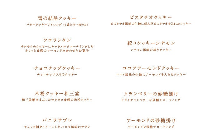 ひときわ目を引く雪の結晶のモチーフや、ふんわりパウダリーな米粉和三盆など、冬を感じるさまざまな味をお楽しみいただけます。