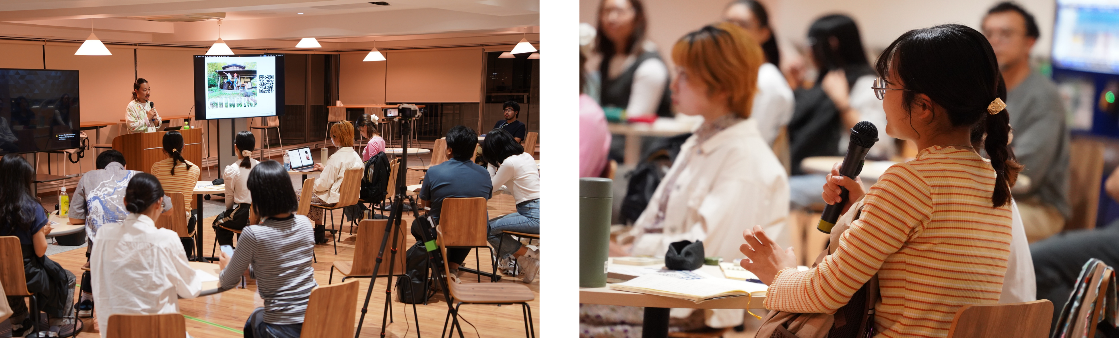 このプロセスは、単なるアップサイクルにとどまらず、文化の継承と社会的な価値創出を両立する「デザインの力」を感じさせるものでした。 講演後には座談会も開催され、石井様にも最後までご参加いただきました。参加者との対話は終始和やかで、貴重な交流の時間となりました。