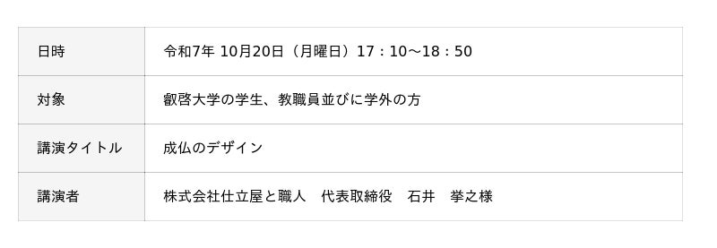 株式会社 仕立屋と職人の代表取締役 石井挙之様にお越しいただき、「成仏のデザイン」をテーマにお話をしていただきました。