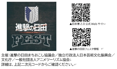 原作者・諫山創氏の故郷・日田市では、これまでも『進撃の巨人』と連携したさまざまな地域コラ ボ企画が行われてきました。その最新企画として、2025 年 12 月 6 日(土)から 2026 年 3 月 1 日(日)まで、市内各所で開催される大型イベント「進撃の日田フェスタ」が実施されます。「進撃の日田フェスタ」は、令和7年度日本博 2.0 を契機とする文化資源コンテンツ創成事業「最 高峰の文化資源の磨き上げによる満足度向上事業(委託型)」に採択された事業です。諫山創氏の 創作を通じて、国内外のファンが日本の地方文化や創造性に触れる機会を提供するとともに、イン バウンド需要の回復や、日田地域の伝統・自然・ものづくり文化の再発見・発信を目指しています。