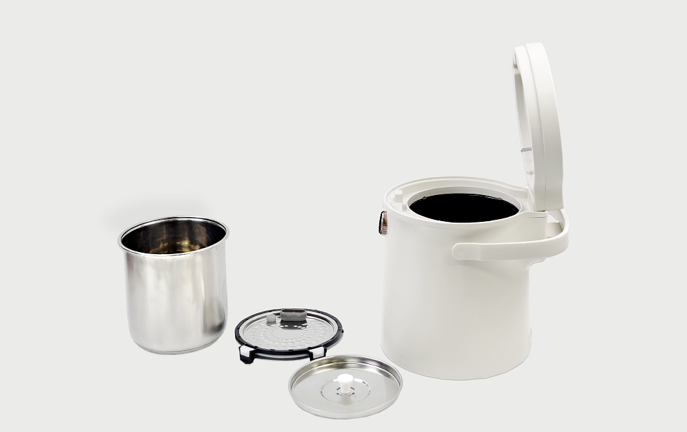 「クリーンポット」は水を注ぎやすいタンクと、保温性の高い2重の内ぶたもこだわり。