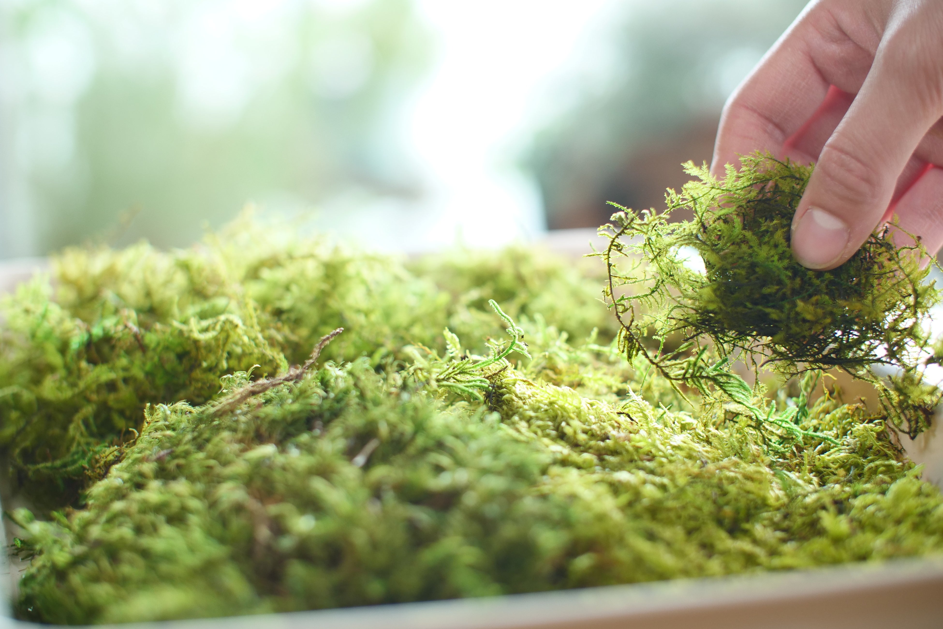 本物の苔なのに、水やり不要、メンテナンスフリーで枯れません。