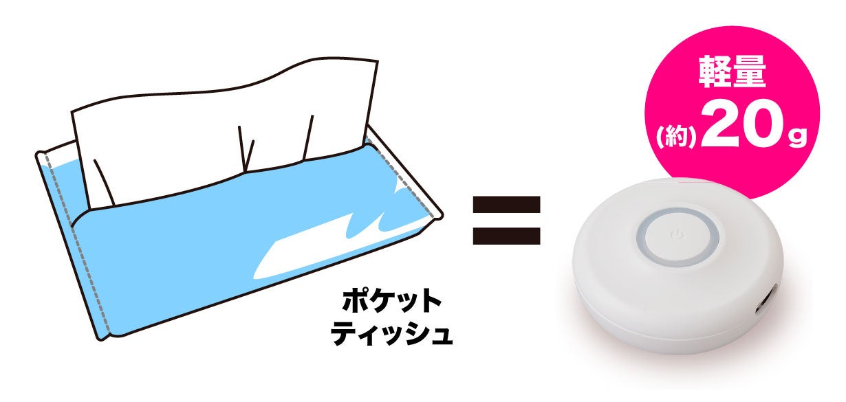 「ポケットティッシュ1つ分」ほどの重さだから、装着しても重さをほとんど感じません。