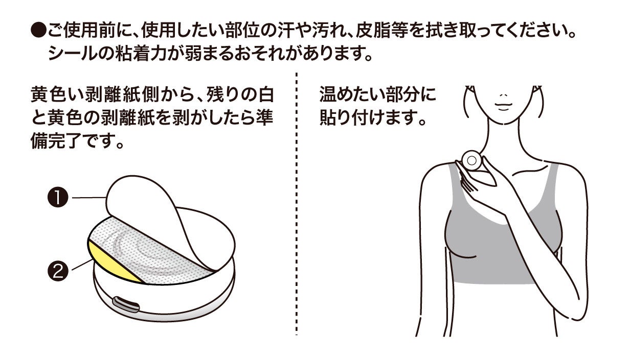 【充電式 ホット灸息タイム】は、付属の専用取り替え用粘着シールを使用します。