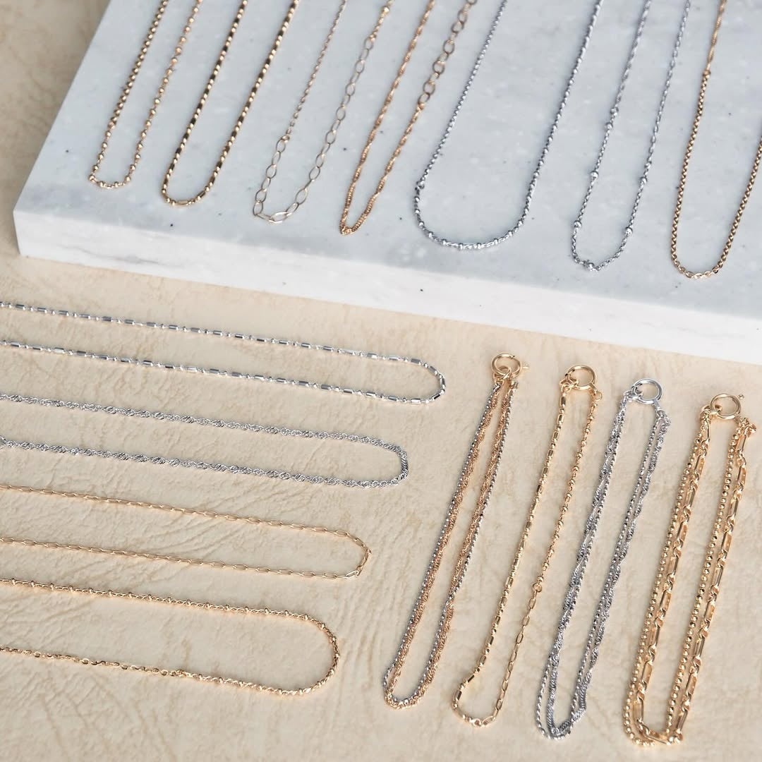ミックスチェーンネックレス&ブレスレット:税込23,100円より(K10YG・K10WG)