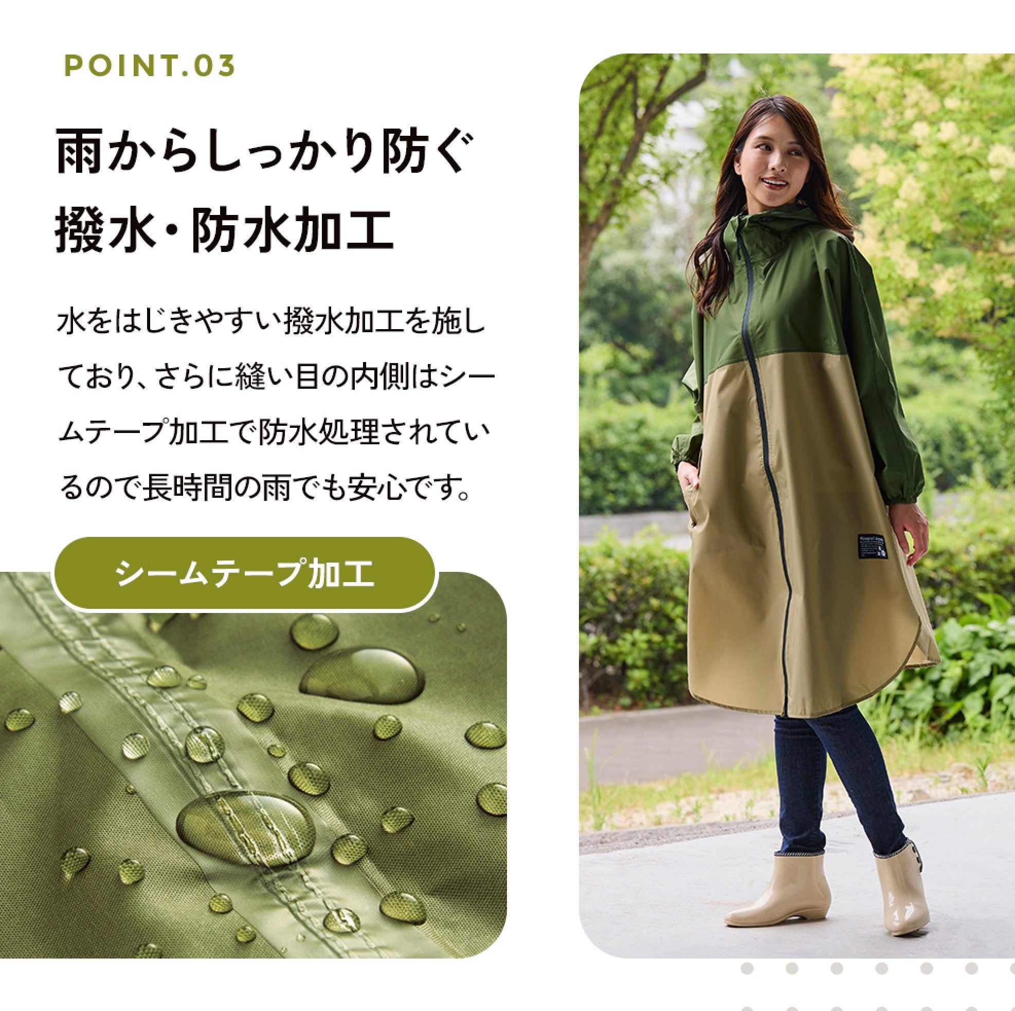 背負ったリュックなどもまるごとカバーできる、ゆったりサイズのレインコート。