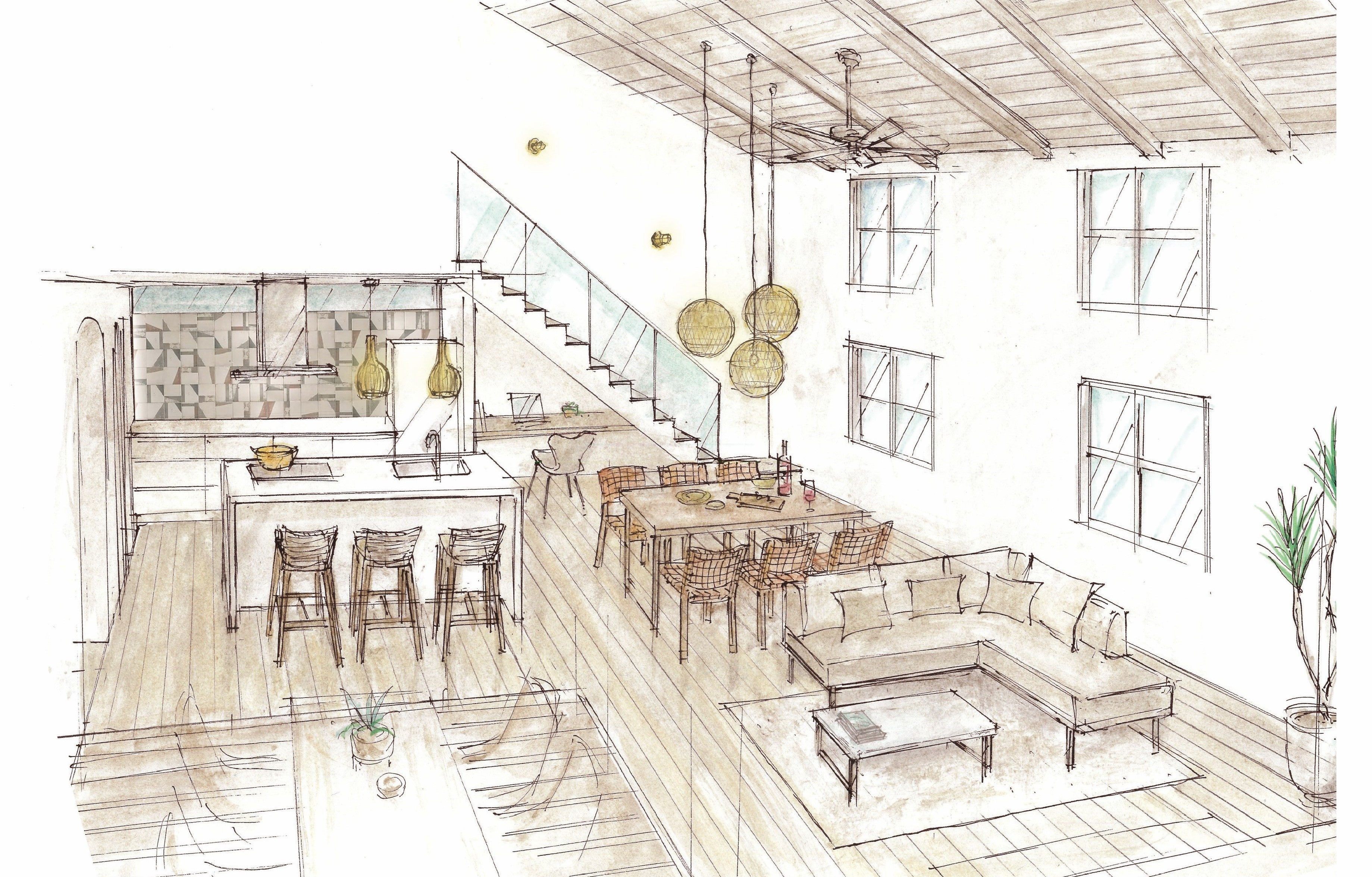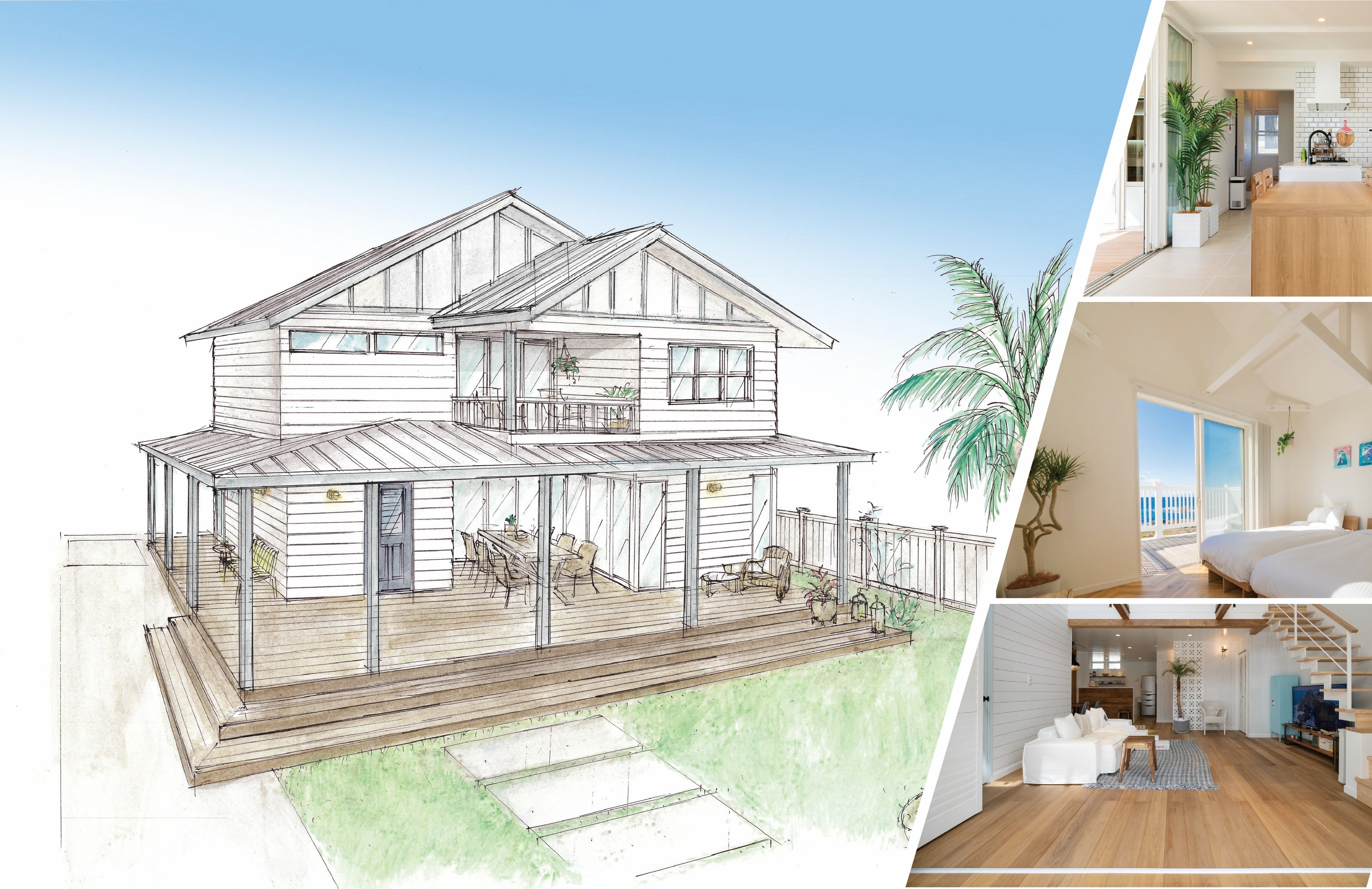 カルフォルニア工務店とコラボし、サーフィンやマリンスポーツなど、海辺のライフスタイルもたのしめる「コースタルハウス」を意識した設計・デザインになっています。