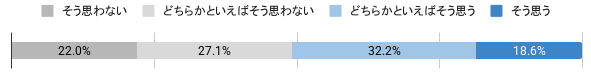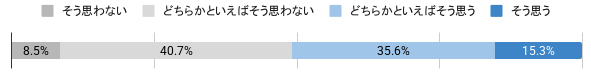 「(できていないと)思わない」が計49.1%、「思う」が計50.8%と、意見が分かれる結果となっています。