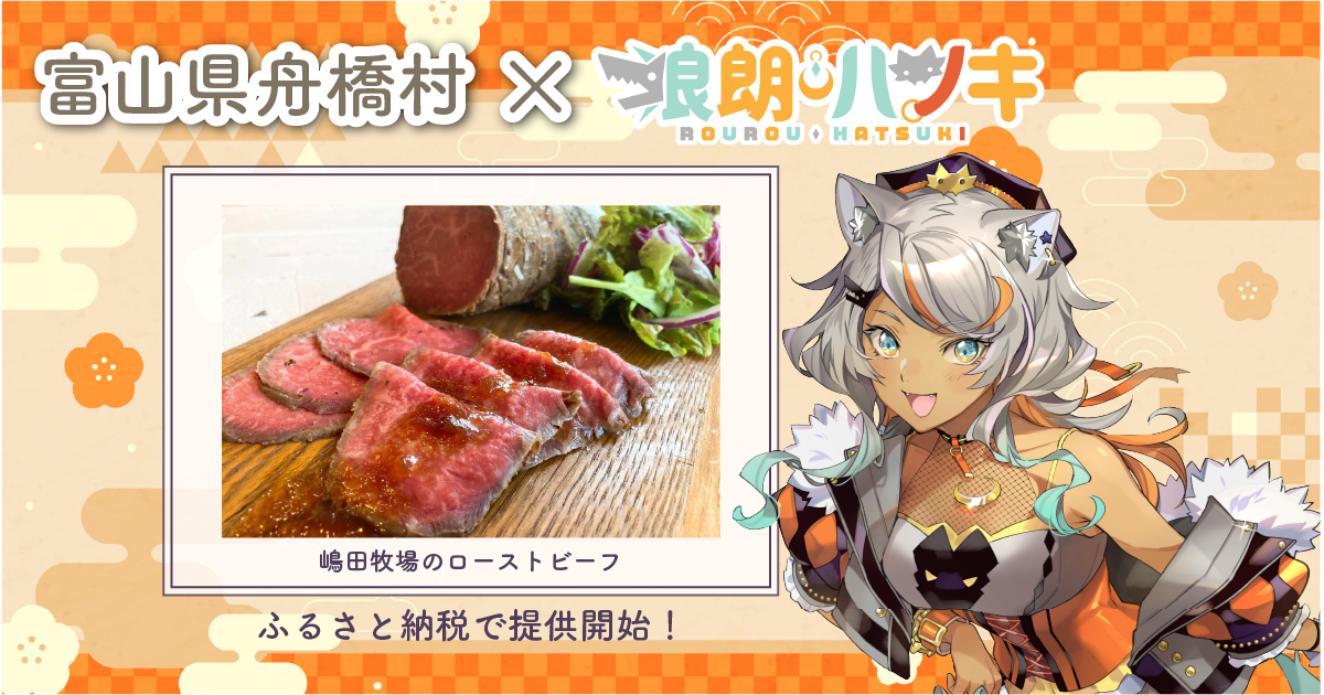 日本一小さい村、富山県舟橋村がVtuber「狼朗ハツキ」とコラボ!嶋田牧場のローストビーフをふるさと納税の返礼品として提供します。